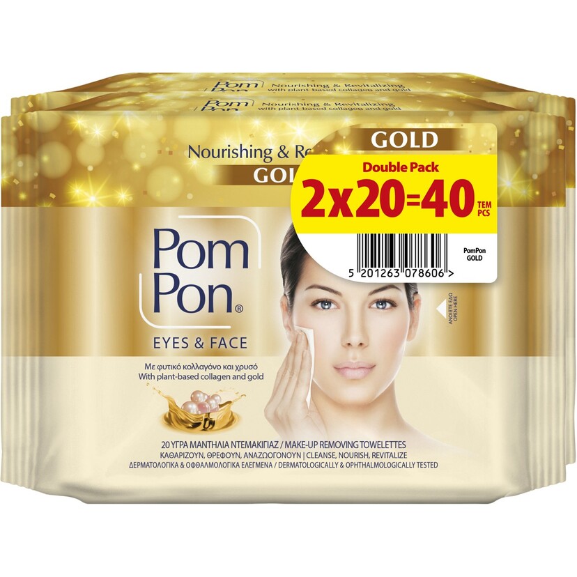 POM PON υγρά μαντήλια ντεμακιγιάζ Gold Double Pack 2x20τεμ.