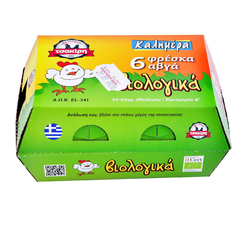 Αυγά ΤΣΑΚΙΡΗ φρέσκα βιολογικά (6x53-63g)