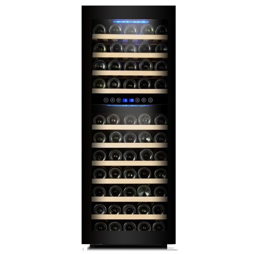 Ψυγείο βιτρίνα κρασιών με ξύλινα ράφια 2 ζωνών χωρητικότητας 25+45 φιαλών