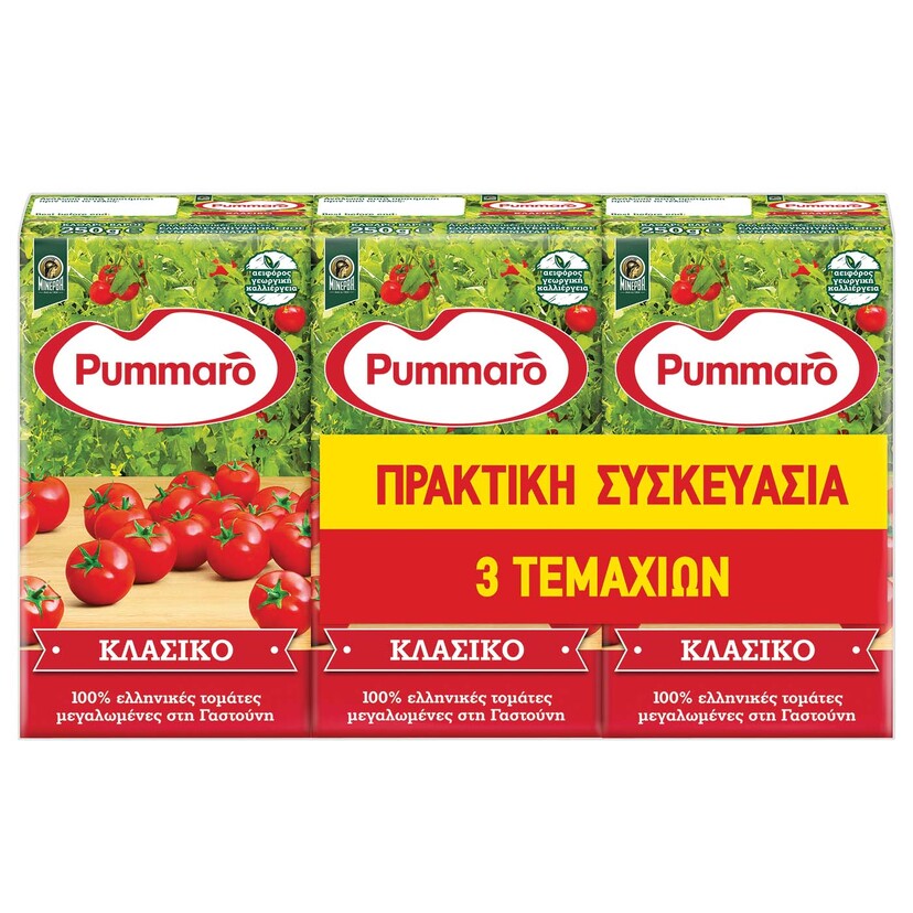 PUMMARO χυμός τομάτας κλασικός ελαφρά συμπυκνωμένος 3x250g