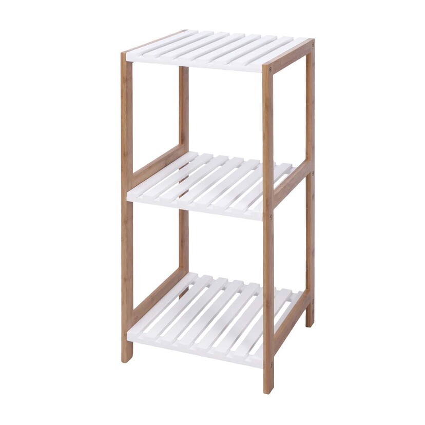 Η επιδαπέδια ραφιέρα μπάνιου από ξύλο bamboo διαθέτει τρία ράφια αποθήκευσης στα οποία μπορείτε να τοποθετήσετε τα προϊόντα της προσωπικής σας περιποίησης ώστε να έχετε πάντα ένα οργανωμένο και τακτοποιημένο μπάνιο.