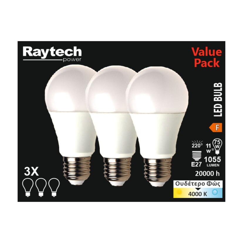 RAYTECH σετ τριάδα λάμπες LED Α60 11W 4000K λευκό φως