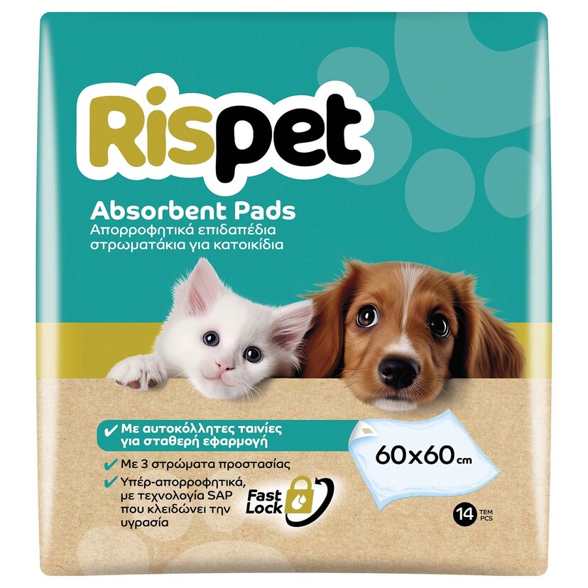 Επιδαπέδια απορροφητικά στρωματάκια για κατοικίδια υψηλής απορροφητικότητας, με αυτοκόλλητες ταινίες στις 4 άκρες για σταθερή εφαρμογή στο πάτωμα, χωρίς να γλιστράνε ή να αφήνουν υπολείμματα κόλλας. Με 3 στρώματα προστασίας και ειδικό υπέρ-απορροφητικό υλικό (SAP). Βοηθούν στη μείωση δυσάρεστων οσμών. Με ανθεκτική πλαστική επένδυση στο κάτω μέρος για να μην σκίζονται εύκολα. Βοηθούν στην προστασία από διαρροές στο πάτωμα και στα χαλιά σας. Ιδανικές για εκπαίδευση τουαλέτας, εμμηνόρροια και ακράτεια.