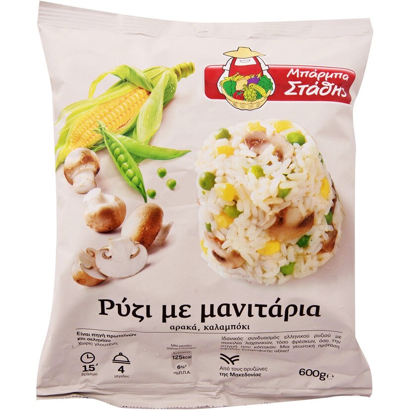 Ρύζι ΜΠΑΡΜΠΑ ΣΤΑΘΗΣ με μανιτάρια κατεψυγμένο (600g)