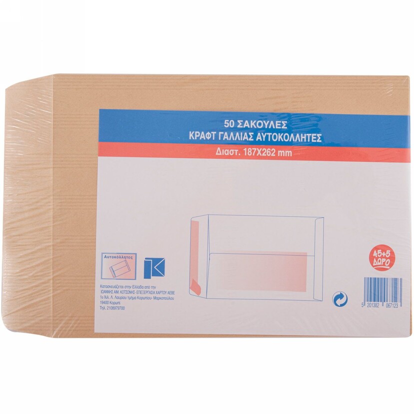 Σακούλα Kraft 18,7x26cm με αυτοκόλλητο 50τεμ.