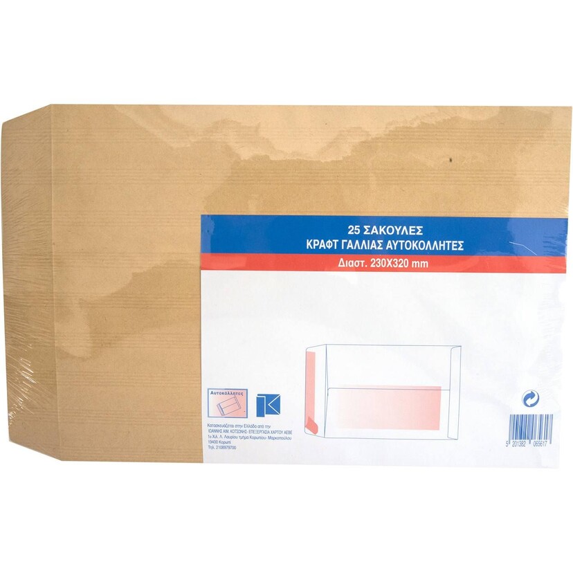 Σακούλα κραφτ 23x32cm με αυτοκόλλητο (25τεμ.)