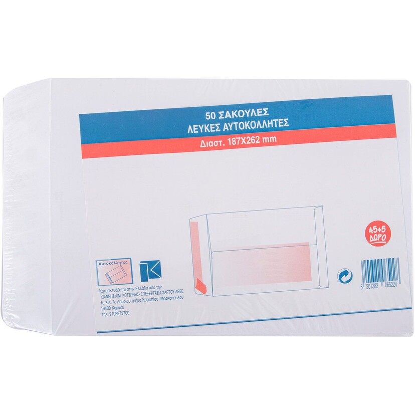Σακούλες λευκές 18,7x26cm με αυτοκόλλητα 50τεμ.