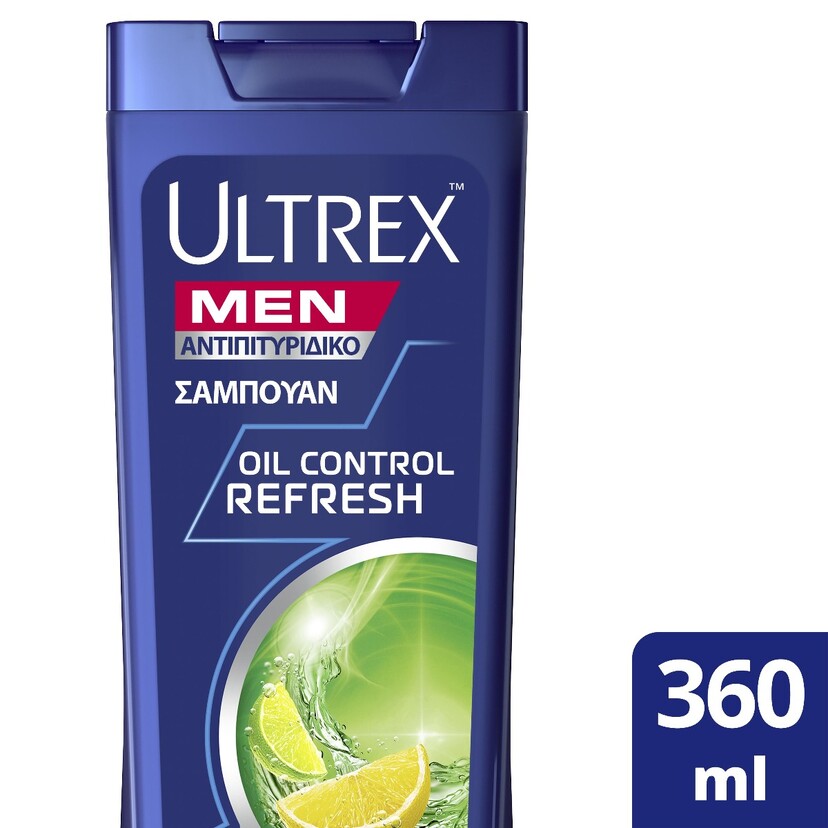 Σαμπουάν ULTREX Men Oil Control Refresh αντιπιτυριδικό για λιπαρά μαλλιά και λιπαρή επιδερμίδα (360ml)