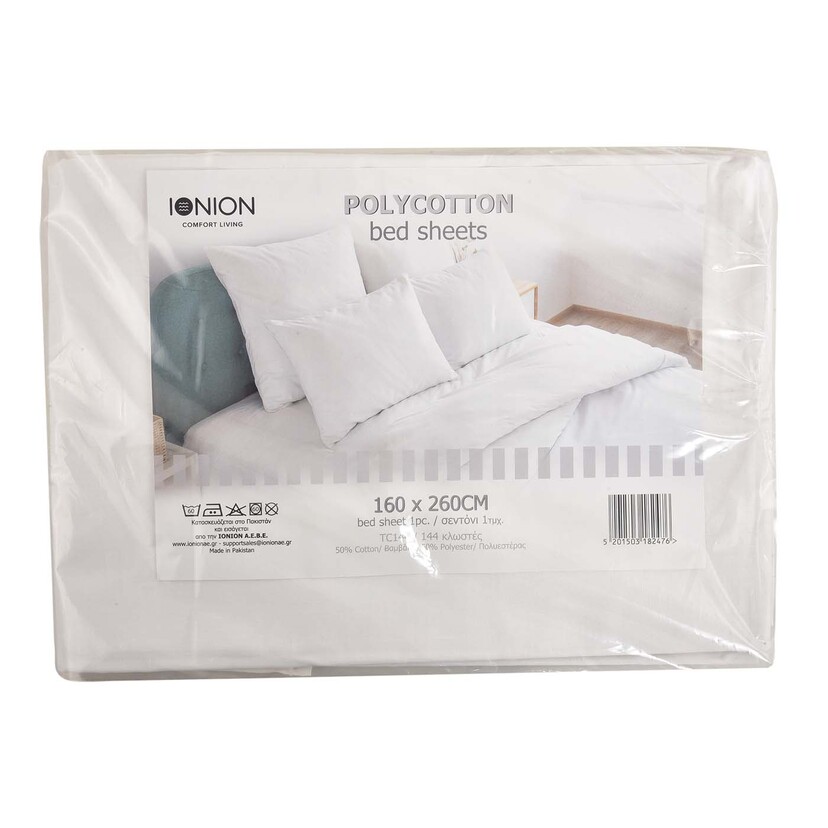 Σεντόνι μονό βαμβάκι/πολυεστέρας λευκό 160x260cm