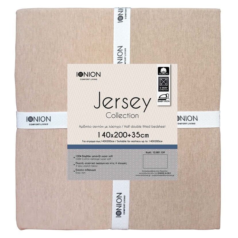 Σεντόνια Jersey μελανζέ μπεζ 140x200+35cm