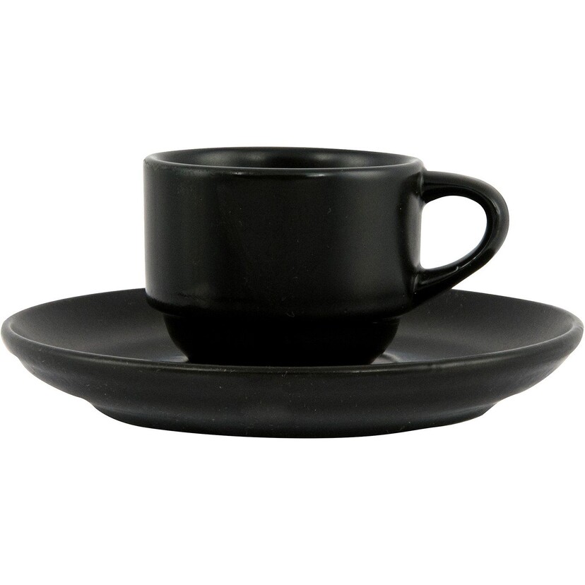 Σετ φλυτζάνι και πιάτο πορσελάνης GURAL Bodrum μαύρο ματ 6cl