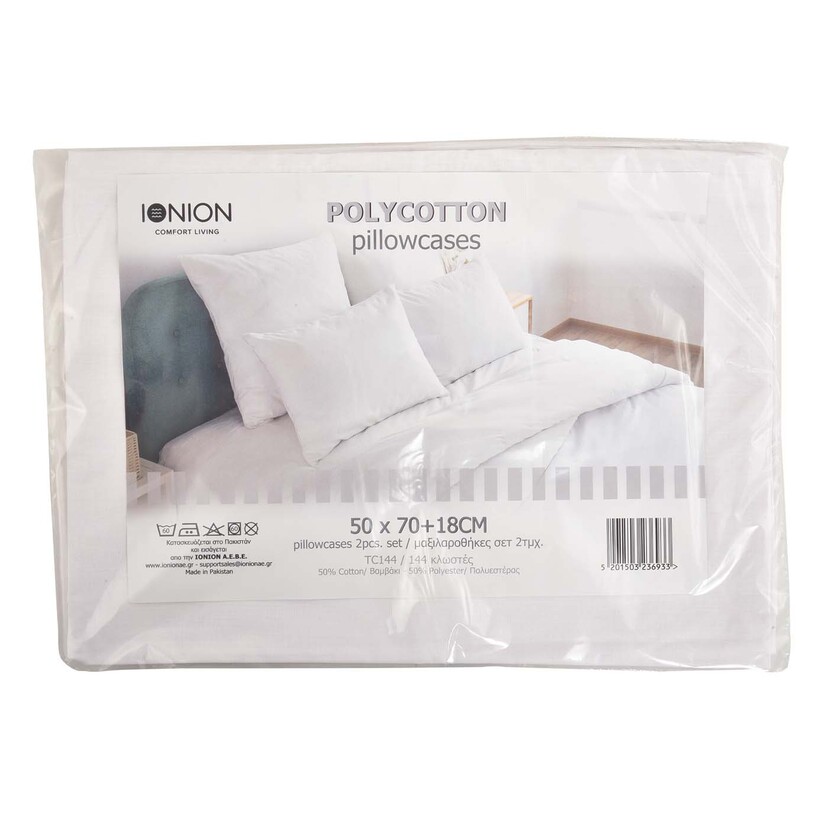 Σετ μαξιλαροθήκες βαμβάκι/πολυεστέρας λευκές 50x70+18cm 2τεμ
