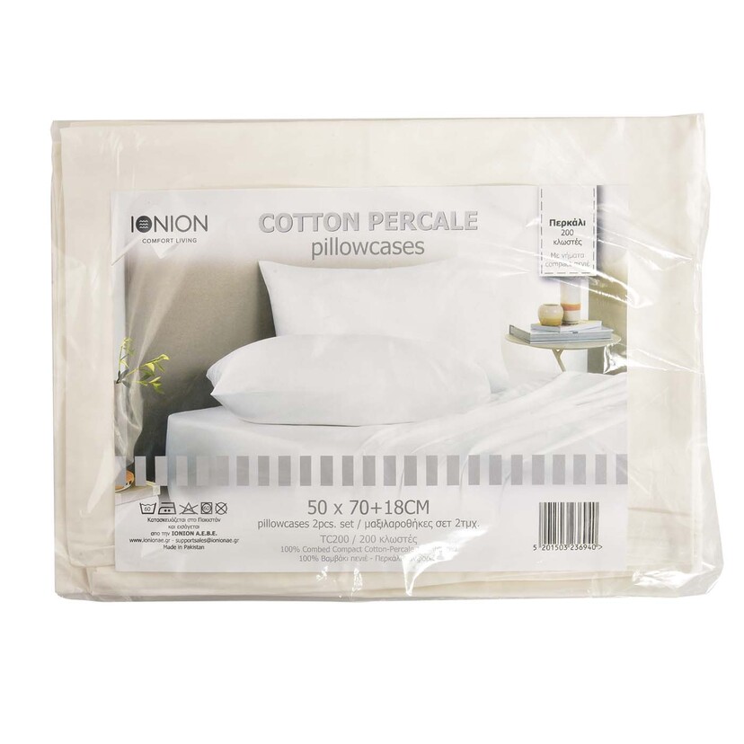 Σετ μαξιλαροθήκες βαμβάκι/πολυεστέρας λευκές 52x72+22cm 2τεμ
