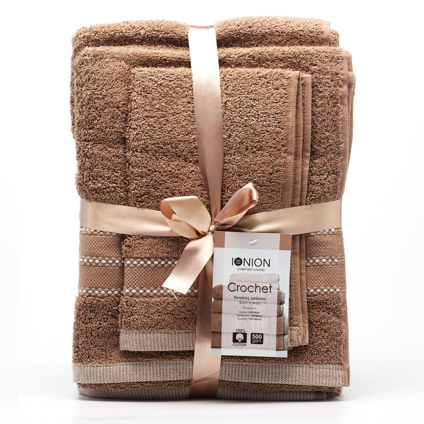 Σετ πετσέτες Crochet 3τεμ μπεζ 500gsm