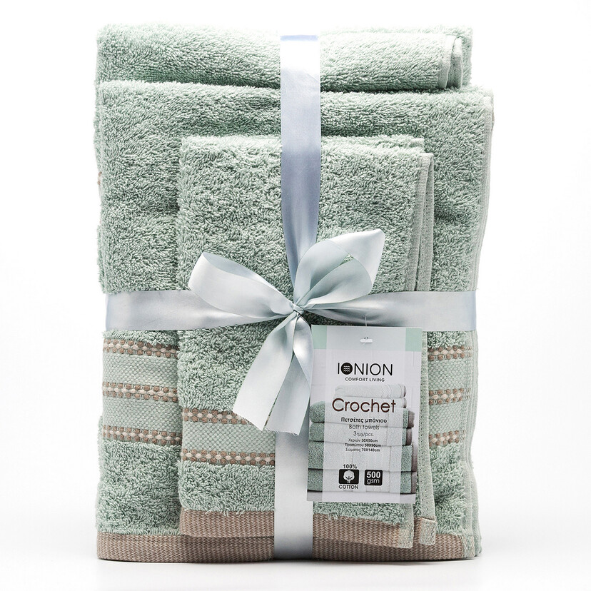 Σετ πετσέτες Crochet 3τεμ πράσινες 500gsm