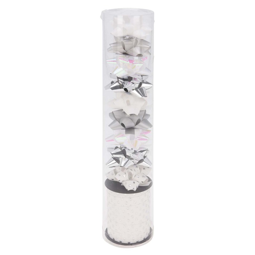 Σετ συσκευασίας 1 κορδέλα και 9 ασημί φιόγκοι