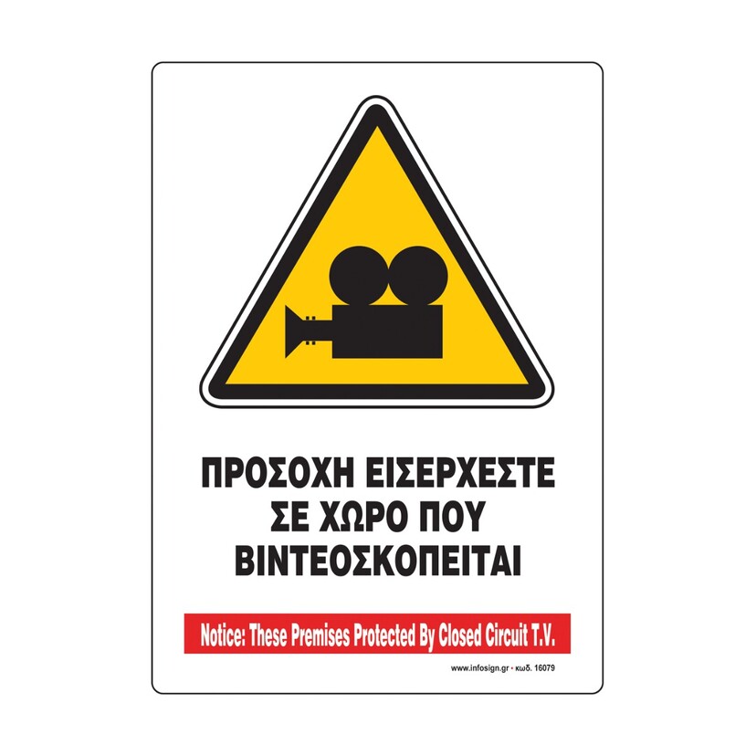 Σήμα προειδοποίησης Παρακολούθησης χώρου αυτοκόλλητο, από PVC