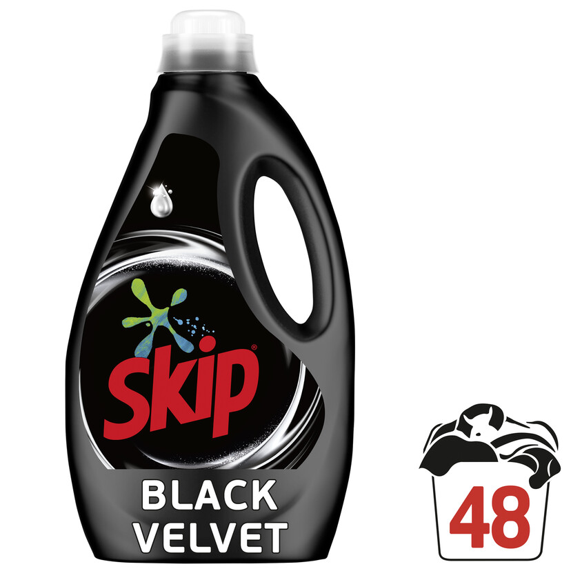 Το Skip Black Velvet για έντονα μαύρα και σκουρόχρωμα ρούχα, με ειδικά σχεδιασμένη σύνθεση με care elixir 2 σε 1, βοηθάει να διατηρούνται τα μαύρα και σκούρα χρώματα ζωντανά ενώ παράλληλα απομακρύνει τους κόμπους για να έχουν τα ρούχα σας λαμπερή όψη. Φροντίδα και καθαριότητα για ρούχα που δείχνουν σαν καινούρια!