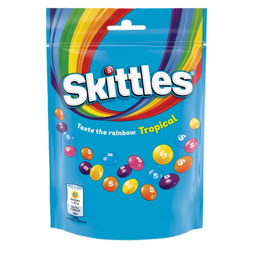 Ένα σακουλάκι με ζαχαρωτά Skittles Tropical σε μορφή μερίδας 196 γραμμαρίων