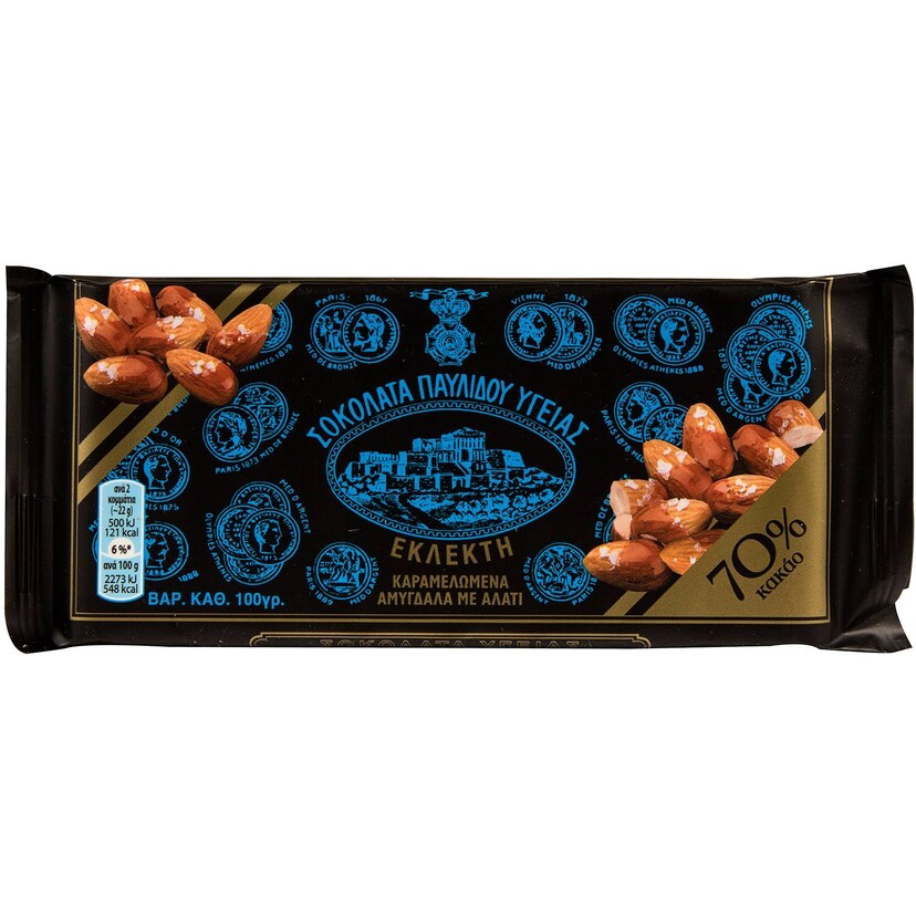 Σοκολάτα ΠΑΥΛΙΔΗΣ υγείας 70% με αλατισμένα αμύγδαλα (100g)