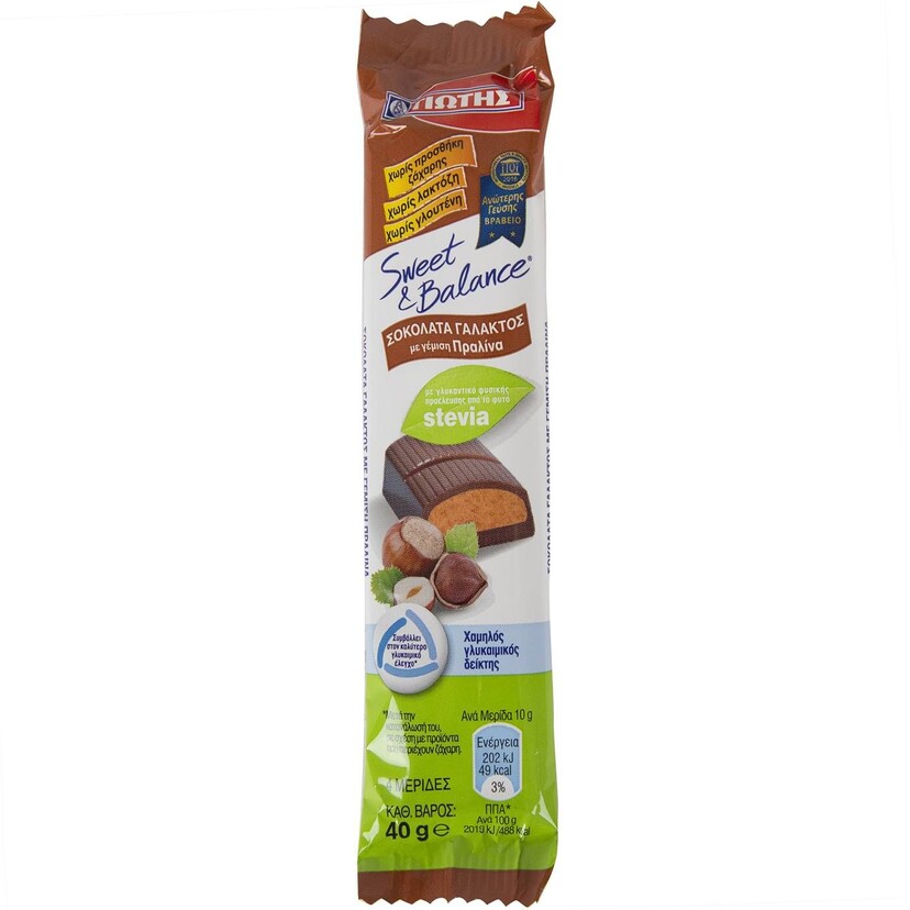 Σοκολατάκια SWEET AND BALANCE σοκολάτα γάλακτος με στέβια και γέμιση πραλίνα (40g)