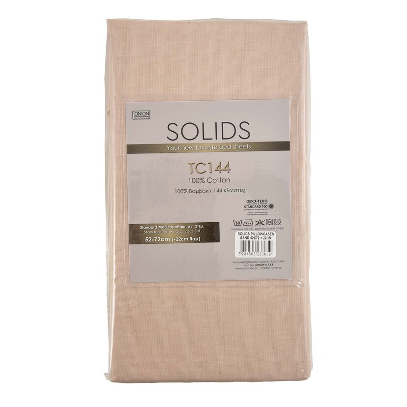 SOLIDS μαξιλαροθήκη 144TC 52x72x22cm ανοιχτό μπεζ 2τεμ