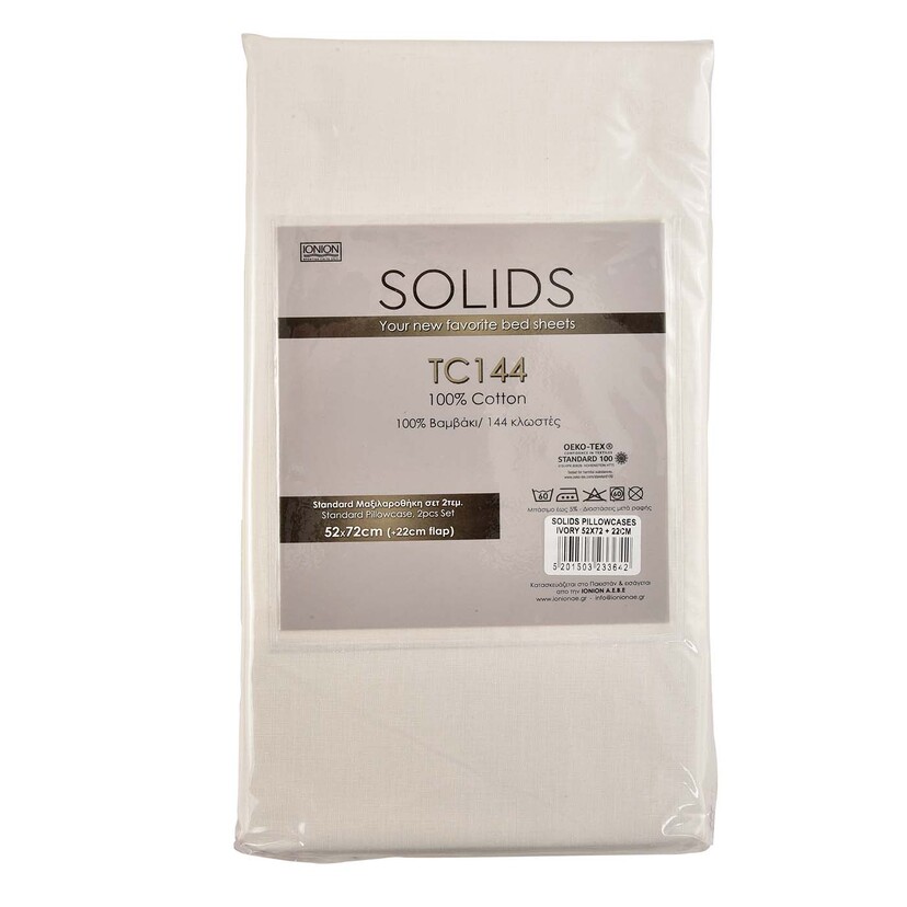 SOLIDS μαξιλαροθήκη 144TC 52x72x22cm ιβουάρ 2τεμ