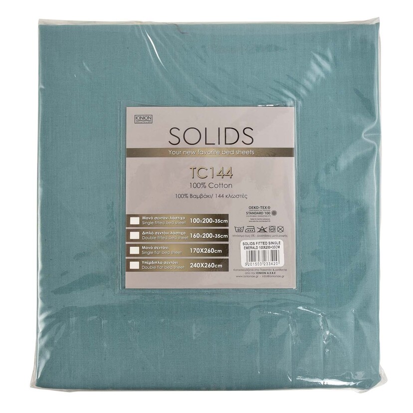 SOLIDS σεντόνι BMB 144TC 100x200X35cm σμαραγδί