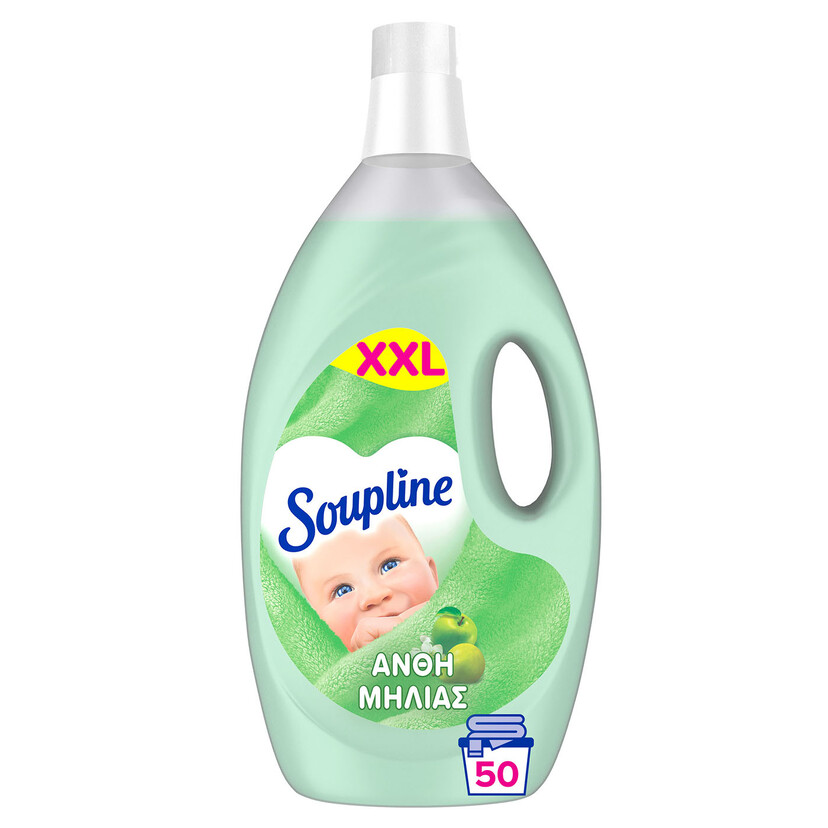 Το Soupline προσφέρει το συμπυκνωμένο μαλακτικό ρούχων με άρωμα άνθη μηλιάς σε συσκευασία των 4 λίτρων, το οποίο αντιστοιχεί σε 50 μεζούρες.