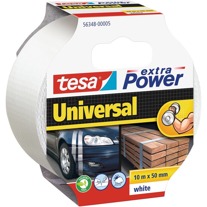 TESA υφασμάτινη ταινία extra Power λευκή 10m x 50mm Η υφασμάτινη ταινία tesa® extra Power Universal είναι μια ταινία επισκευών πολλαπλών χρήσεων που χαρακτηρίζεται από εξαιρετικά ισχυρή δύναμη συγκόλλησης. Είναι μια ταινία επισκευών που ταιριάζει σε ένα ευρύ φάσμα εφαρμογών. Αν και ξεχωρίζει για την ανώτερη αντοχή της, η ταινία αυτή μπορεί εύκολα να σχιστεί με το χέρι και είναι συνεπώς πάντα έτοιμη για γρήγορες επισκευές, χειροποίητες κατασκευές, στερέωση, τύλιγμα, ενίσχυση, σήμανση και πολλά άλλα. Είναι μια γενική επισκευαστική ταινία για εσωτερικές και εξωτερικές εφαρμογές, είναι επαρκώς ανθεκτική στις καιρικές συνθήκες και κολλάει σχεδόν σε οποιαδήποτε επιφάνεια. Για χειροποίητες κατασκευές, επισκευή, στερέωση, τύλιγμα, ενίσχυση, σήμανση και πολλά άλλα Για καθημερινές απλές λύσεις, γρήγορες και εύκολες επισκευές Πολύ καλή πρόσφυση σε όλους τους τύπους επιφανειών Ανθεκτική στις καιρικές συνθήκες για εσωτερικές και εξωτερικές εφαρμογές Δύναται να σχιστεί με το χέρι Χωρίς διαλύτες