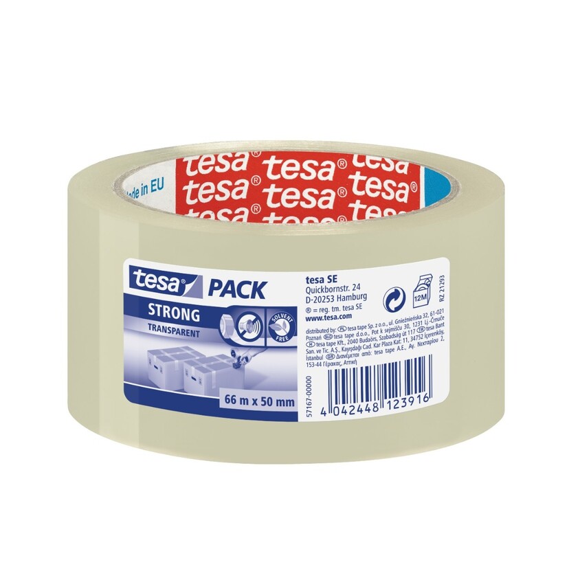 TESA ταινία συσκευασίας Χ6 Strong διαφανή LN 66m x 50mm Το tesapack® strong είναι μια ταινία συσκευασίας χαρτοκιβωτίων που ταιριάζει σε ένα ευρύ φάσμα τυπικών οικιακών εφαρμογών. Πρόκειται για μια ευπροσάρμοστη ταινία που είναι πάντα χρήσιμη για να συσκευάσετε ένα δέμα ή να σφραγίσετε ένα κουτί αποστολής. Λόγω του φορέα από πολυπροπυλένιο, αντέχει στην υπεριώδη ακτινοβολία. Με την ειδική αυτοκόλλητη επίστρωση με υψηλή αντοχή στις δυνάμεις διάσχισης εγγυάται ισχυρή και αξιόπιστη προσκόλληση. Για εύκολο χειρισμό και γρήγορη συσκευασία, χρησιμοποιήστε το σε συνδυασμό με οποιαδήποτε από τα dispenser χειρός tesa® Ισχυρή υποστήριξη PP Αυτοκόλλητο χωρίς διαλύτες με υψηλή αντοχή στην υπεριώδη ακτινοβολία Πολύ καλή σφράγιση χάρη στην υψηλή αντοχή της ταινίας Ομοιόμορφο ξετύλιγμα με χαμηλό θόρυβο Κατάλληλη για χρήση σε όλα τα dispenser χειρός tesa®