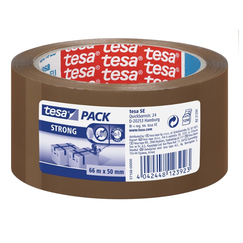 TESA ταινία συσκευασίας Χ6 Strong καφέ LN 66m x 50mm Το tesapack® strong είναι μια ταινία συσκευασίας χαρτοκιβωτίων που ταιριάζει σε ένα ευρύ φάσμα τυπικών οικιακών εφαρμογών. Πρόκειται για μια ευπροσάρμοστη ταινία που είναι πάντα χρήσιμη για να συσκευάσετε ένα δέμα ή να σφραγίσετε ένα κουτί αποστολής. Λόγω του φορέα από πολυπροπυλένιο, αντέχει στην υπεριώδη ακτινοβολία. Με την ειδική αυτοκόλλητη επίστρωση με υψηλή αντοχή στις δυνάμεις διάσχισης εγγυάται ισχυρή και αξιόπιστη προσκόλληση. Για εύκολο χειρισμό και γρήγορη συσκευασία, χρησιμοποιήστε το σε συνδυασμό με οποιαδήποτε από τα dispenser χειρός tesa® Ισχυρή υποστήριξη PP Αυτοκόλλητο χωρίς διαλύτες με υψηλή αντοχή στην υπεριώδη ακτινοβολία Πολύ καλή σφράγιση χάρη στην υψηλή αντοχή της ταινίας Ομοιόμορφο ξετύλιγμα με χαμηλό θόρυβο Κατάλληλη για χρήση σε όλα τα dispenser χειρός tesa®
