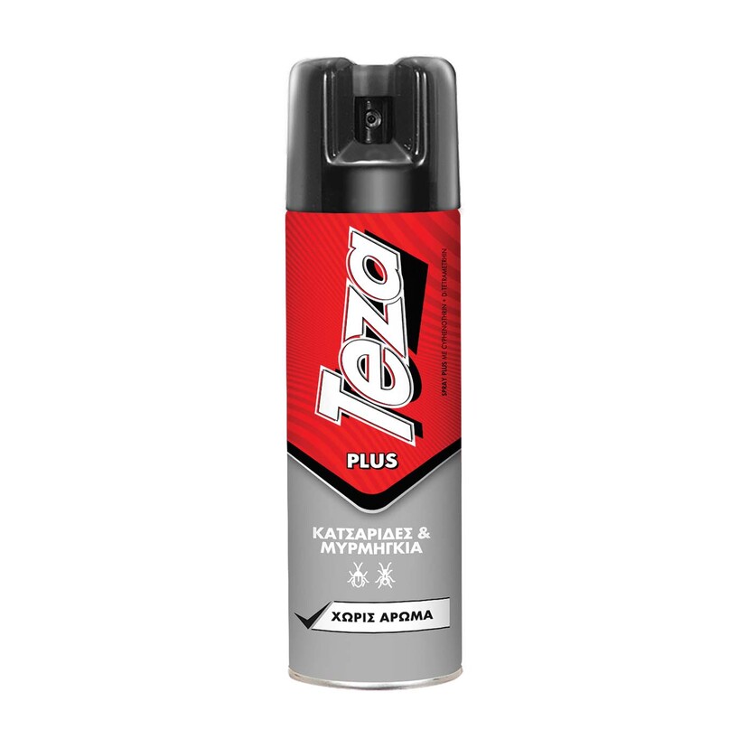 Teza Spray χωρίς άρωμα το οποίο καταπολεμά τα έρποντα έντομα όπως κατσαρίδες, μυρμήγκια, κοριούς, τσιμπούρια, αράχνες και ψύλλους. Η ειδική βαλβίδαπου διαθέτει σας επιτρέπει να ψεκάζετε σε χαμηλά ή στενά και δύσκολα σημεία κρατώντας το δοχείο ανάποδα.
