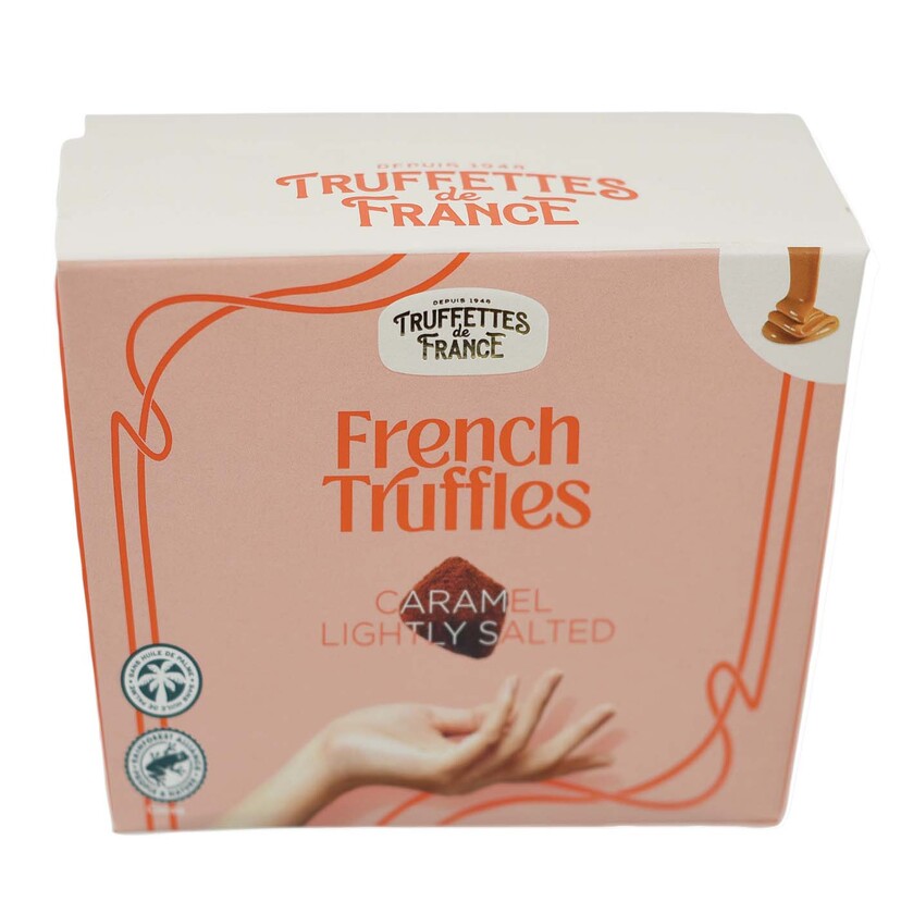 Τα Truffettes de France Salted Butter Toffee 200g είναι γαλλικά σοκολατάκια τρούφας με γεύση αλατισμένης καραμέλας βουτύρου. Κάθε τρούφα διαθέτει πλούσια, κρεμώδη υφή και είναι επικαλυμμένη με κακάο, προσφέροντας μια ισορροπημένη γεύση γλυκού και αλμυρού. Αυτά τα σοκολατάκια είναι ιδανικά για δώρο ή για προσωπική απόλαυση.