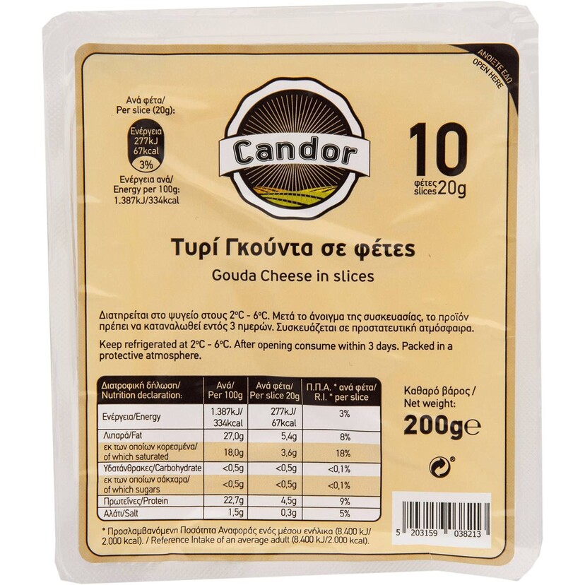Τυρί CANDOR gouda σε φέτες Γερμανίας (200g)