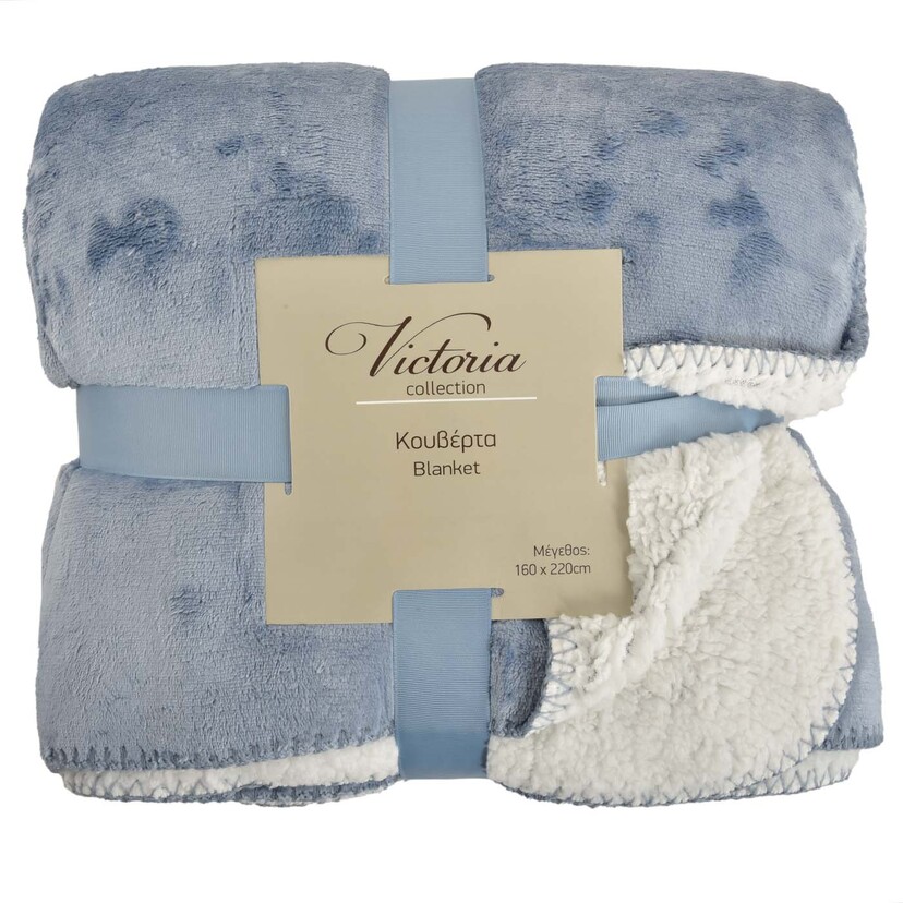 VICTORIA κουβέρτα Flannel σκούρο σιέλ 160x220cm