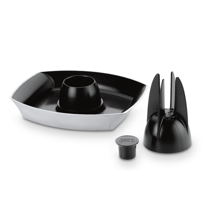 Ετοιμάστε ένα τραγανό και ζουμερό κοτόπουλο, κάθε φορά με το Deluxe στήριγμα κοτόπουλου της Weber. Με ενσωματωμένο κύπελλο για να δέχεται χυμούς, κρασί, μπύρα και μπαχαρικά που γεμίζουν το κοτόπουλό με γεύσεις και αρώματα, παρέχοντας την απαραίτητη υγρασία στο εσωτερικό ώστε να μην "στεγνώσει". Το κάτω μέρος του στηρίγματος, μπορεί να χρησιμοποιηθεί αυτόνομα και ως φόρμα για πίτες ή κεικ. Με κεραμική, αντικολλητική και εύκολη στον καθαρισμό επίστρωση.