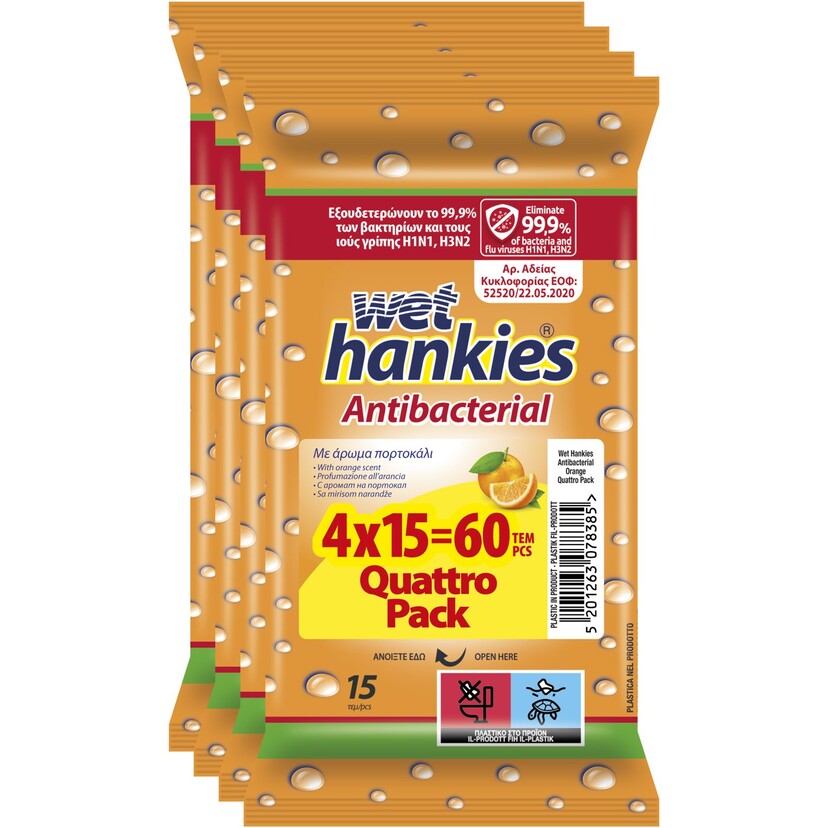 WET HANKIES μαντήλια Antibacterial Orange χεριών 4x15τεμ.