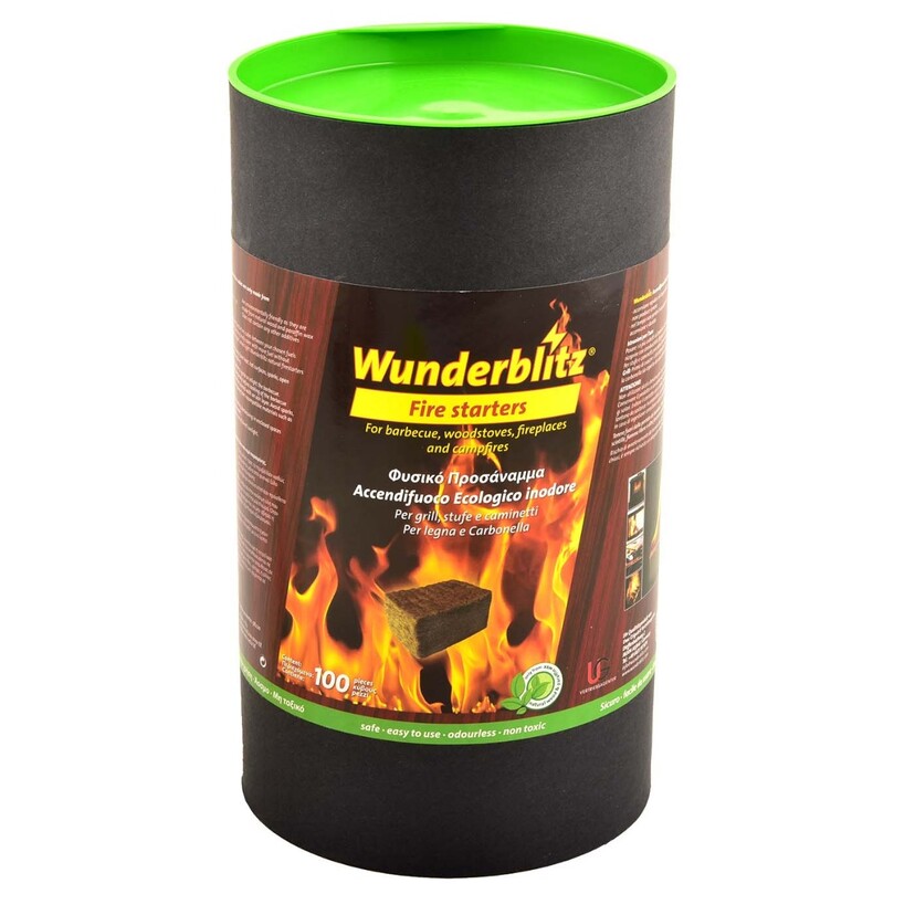 • Φυσικό προσάναμμα Wunderblitz σε κύβους για την προετοιμασία και την έναρξη φλόγας στο τζάκι, τη ψησταριά ή το λέβητα • Καίγεται γρήγορα, βγάζοντας μεγάλη φλόγα. • Χρήσιμο προϊόν για την έναρξης φλόγας σε μεγάλα ξύλα τα οποία δεν μπορούν να ανάψουν με αναπτήρα ή σπίρτα. • Κατασκευάζεται από ροκανίδια, παραφίνη, φυσικά έλαια και ανανεώσιμες πρώτες ύλες, ενώ είναι ασφαλές και άοσμο. • Συσκευασία: 100 τμχ