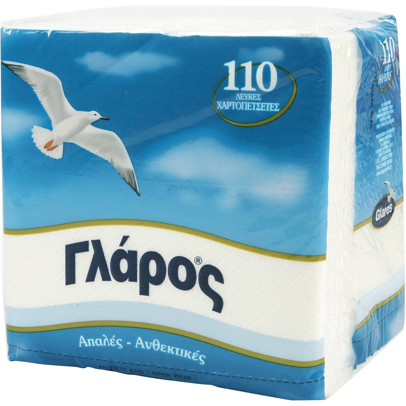 Χαρτοπετσέτες Γλάρος 30x30 110φύλλα (1τεμ.)