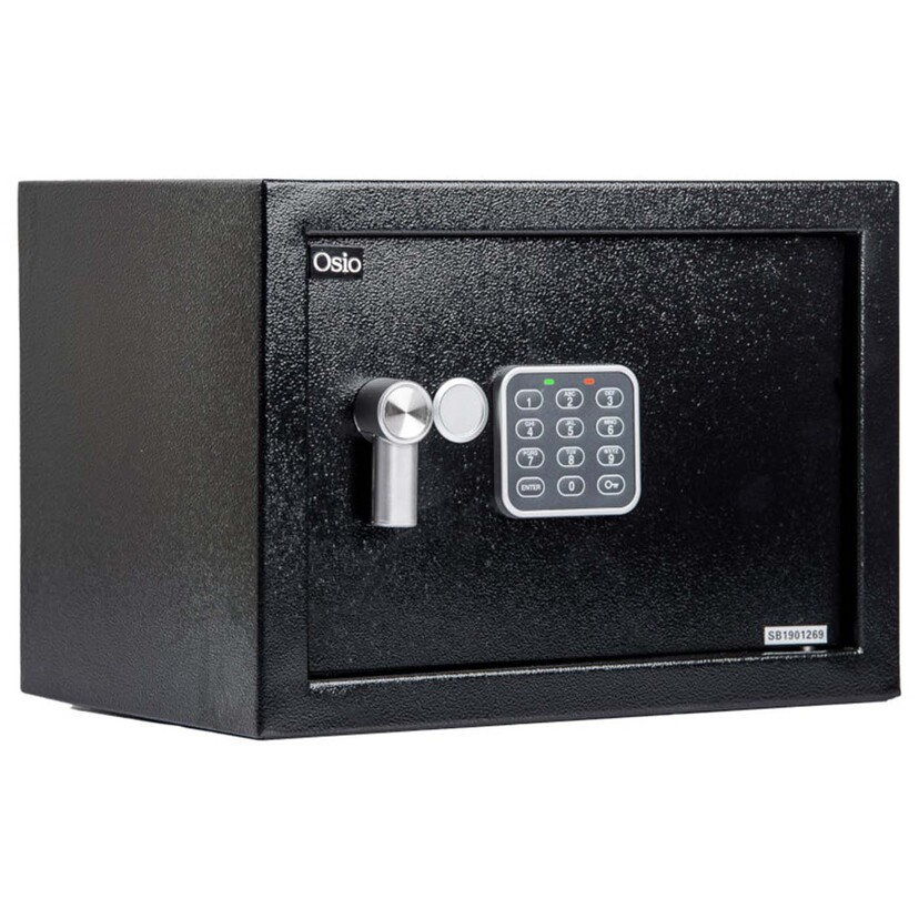 Χρηματοκιβώτιο μαύρο 35x25x25cm Χρηματοκιβώτιο διαστάσεων 35 x 25 x 25 cm με ηλεκτρονική κλειδαριά. Τοποθετείται στον τοίχο και διαθέτει 2 κλειδιά ασφαλείας και πάχος τοιχωμάτων 1 mm. Ειδικά σχεδιασμένο για ξενοδοχεία, ενοικιαζόμενα δωμάτια και σπίτια Airbnb. Χαρακτηριστικά: Ηλεκτρονική κλειδαριά Πάχος τοιχωμάτων: 1 mm Πάχος πόρτας: 3 mm Μηχανισμός ασφάλισης με 2 πίρους 16 mm Περιλαμβάνονται 2 κλειδιά έκτακτης ανάγκης Τροφοδοσία: 4 μπαταρίες ΑΑ Λαμπτήρας LED ελέγχου Σχεδιασμένο για τοποθέτηση σε τοίχο (περιλαμβάνονται υλικά στερέωσης) Κατάλληλο για ξενοδοχεία, ενοικιαζόμενα δωμάτια και σπίτια Airbnb Διαστάσεις: 35 x 25 x 25 cm Εσωτερικές διαστάσεις: 24.8 x 34.8 x 18.5 cm Βάρος: 6.5 kg