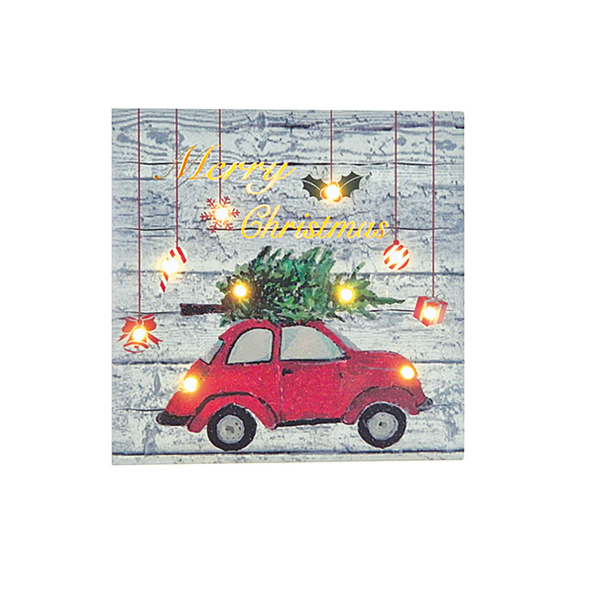 Χριστουγεννιάτικο διακοσμητικό LED φωτιζόμενο κάδρο με αυτοκίνητο 25x25x3cm