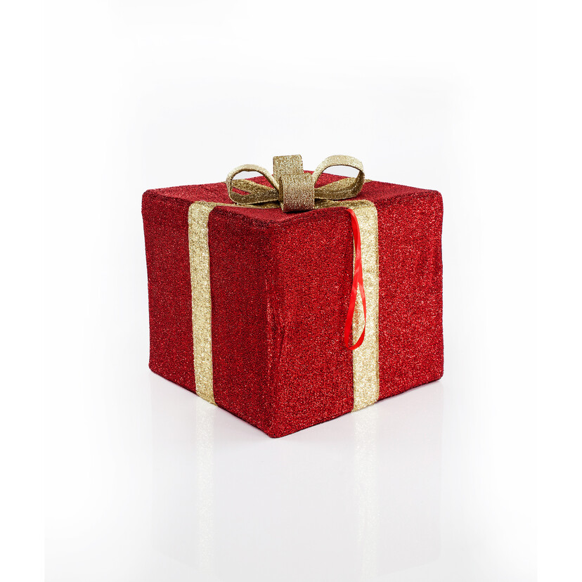 Χριστουγεννιάτικο κουτί δώρου υφασμάτινο κόκκινο με χρυσή κορδέλα 40cm