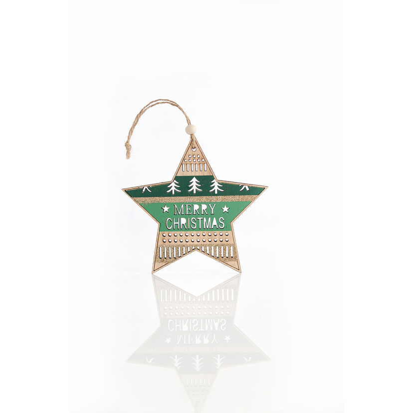 Στολίδι ξύλινο αστέρι μέντα με σκαλιστά σχέδια 23x0,5x13cm