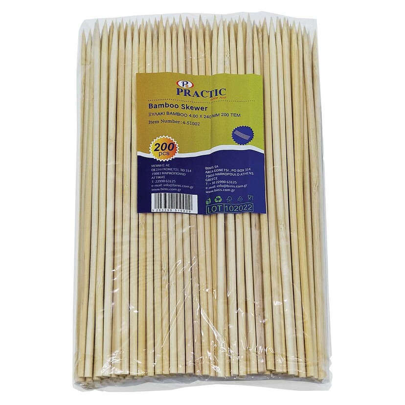 Ξυλάκια για σουβλάκια Bamboo 240x4mm 200τεμ.